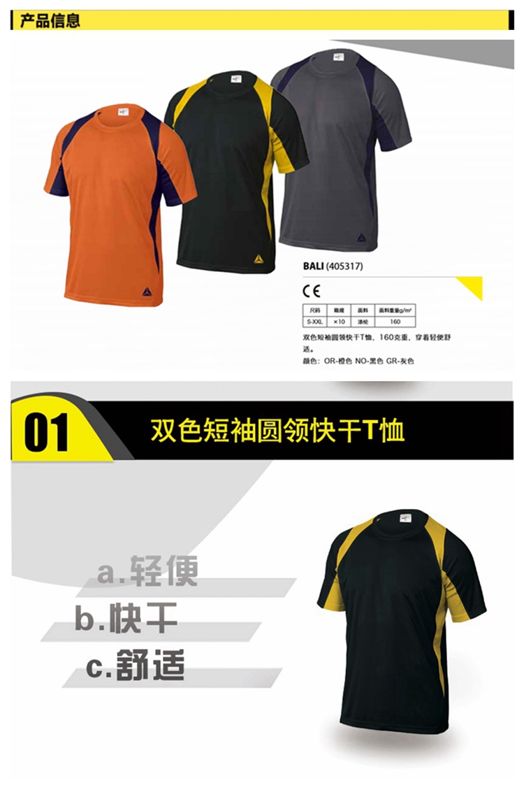 马克2系列双色短袖圆领快干T恤,160克重,穿着轻便舒适