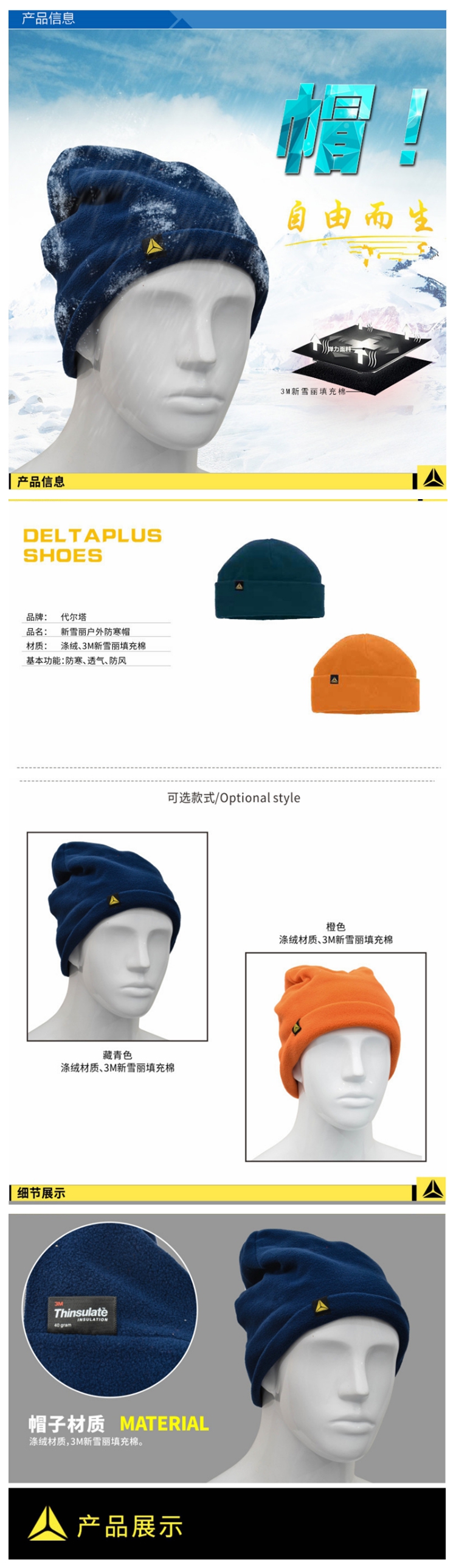 新雪丽户外防寒帽,涤绒材质,3M新雪丽填充 棉,防寒、透气、防风、佩戴轻便舒适。