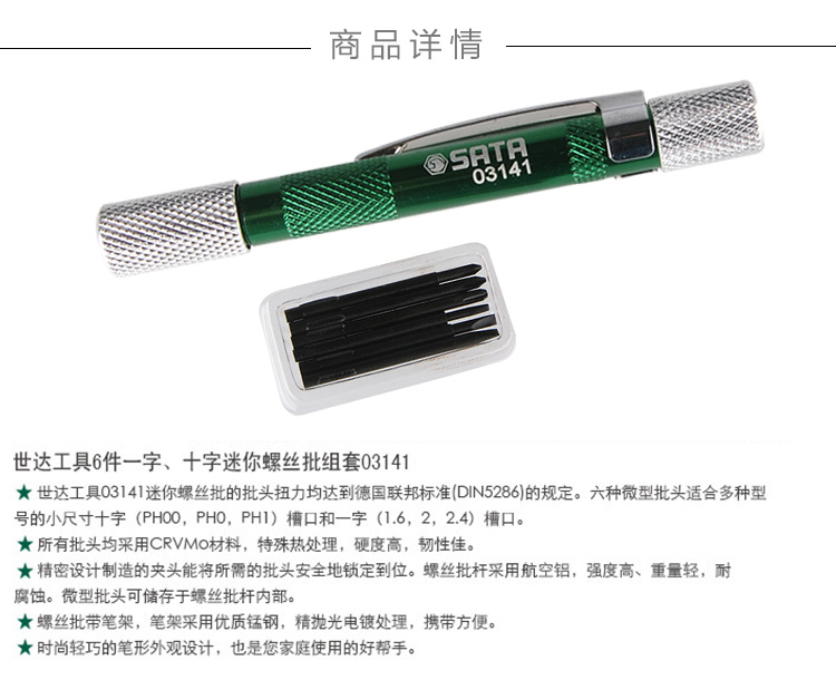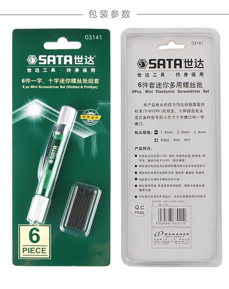 >> 世达(SATA)一字、十字迷你螺丝批手机笔记本6件维修工具套装/03141