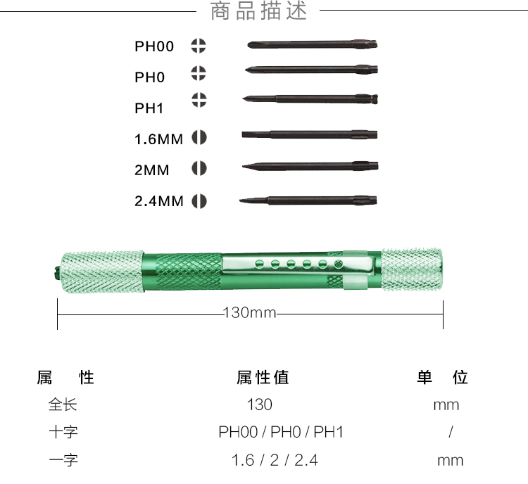 2、螺丝批杆采用航空铝,强度高、重量轻、耐腐蚀