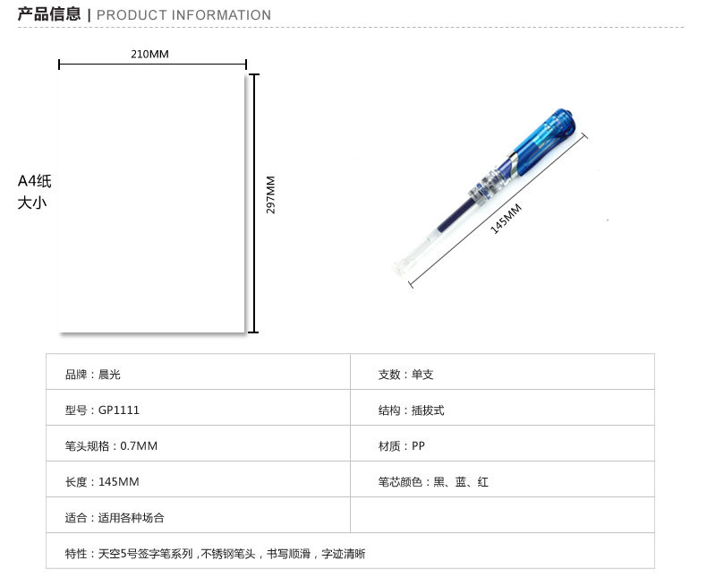 | 晨光文具 中性笔 天空5号 GP1111 中性笔0.7 水笔 办公用品 笔 |