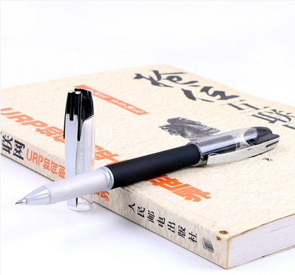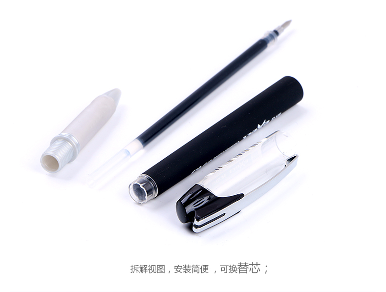 透明笔盖,子弹笔尖,握笔处橡胶材质防滑处理。