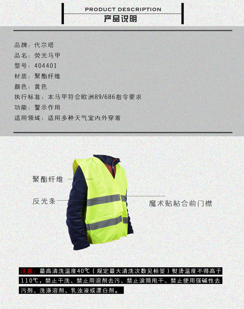 | 代尔塔404401 荧光马甲背心警示服工装工作服/荧光服系列 |