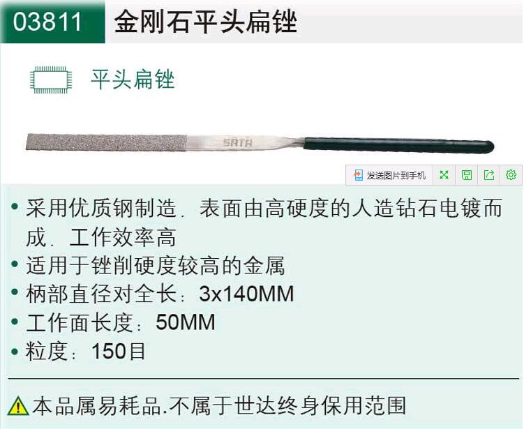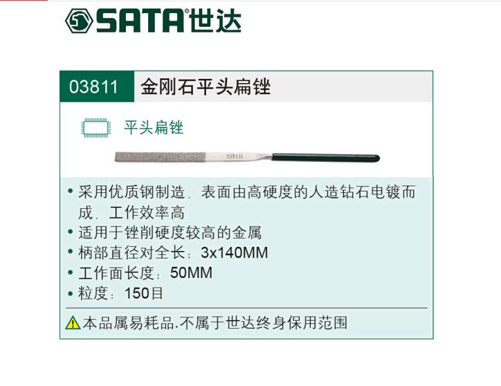 | 世达工具(SATA)金刚石锉刀圆扁锉钢锉什锦锉套装小锉刀平锉钳工锉刀整形锉 平头扁锉3*140mm/03811 | |||