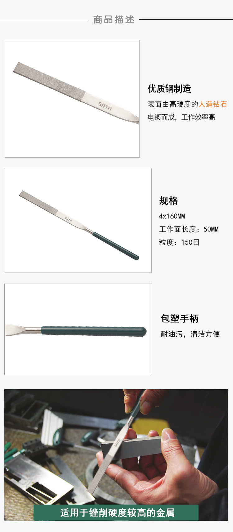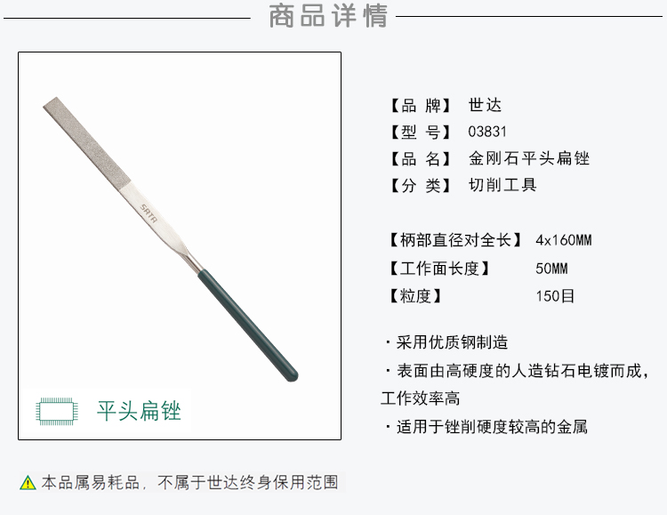 >> 世达工具(SATA)4*160五金金刚锉平头扁锉刀金刚石锉刀钢锉合金锉刀/03831