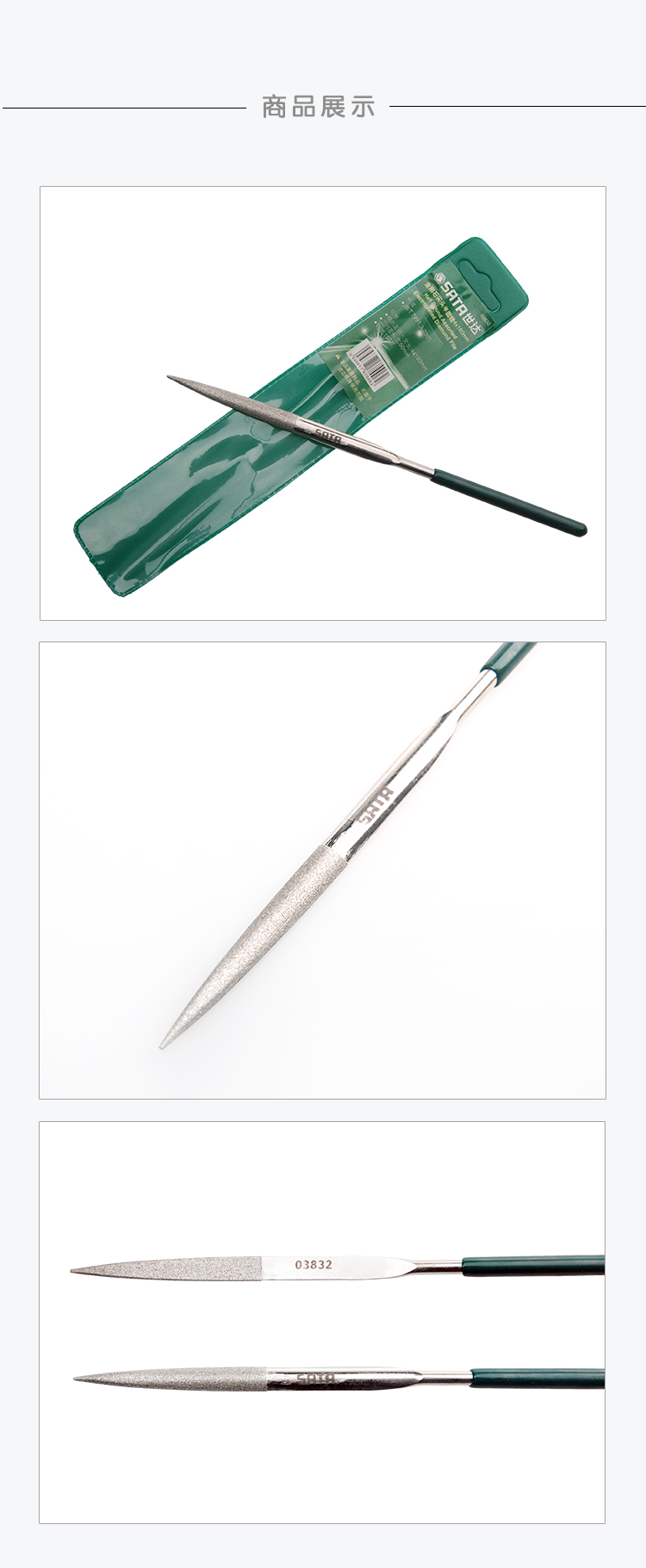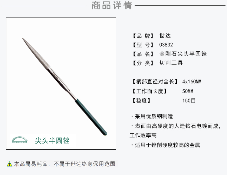 >> 世达工具(SATA)金刚石整形锉刀4×160MM 尖头半圆锉/03832