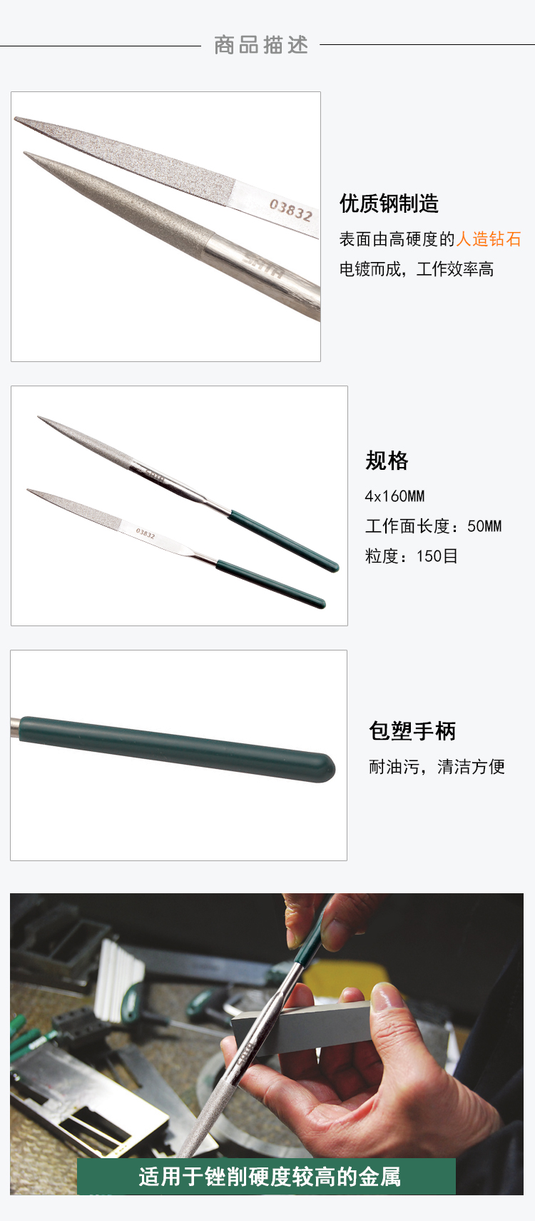 1、表面由高硬度人造钻石电镀而成,工作效率高