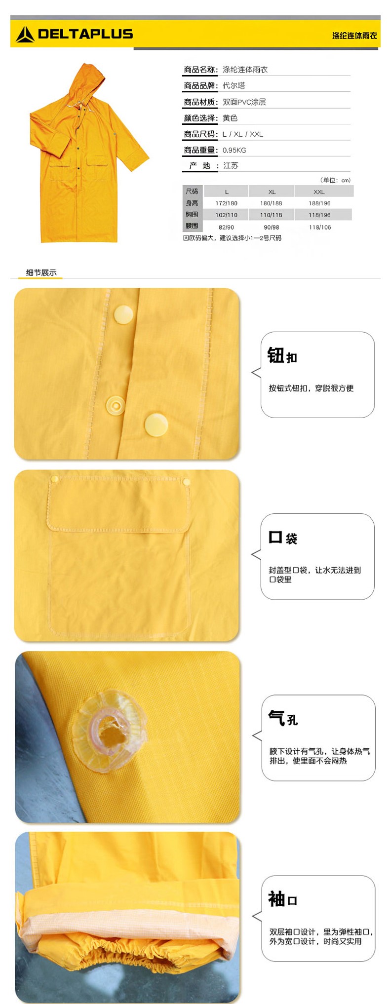 | 代尔塔407005 涤纶风衣版连体式防护雨衣 |