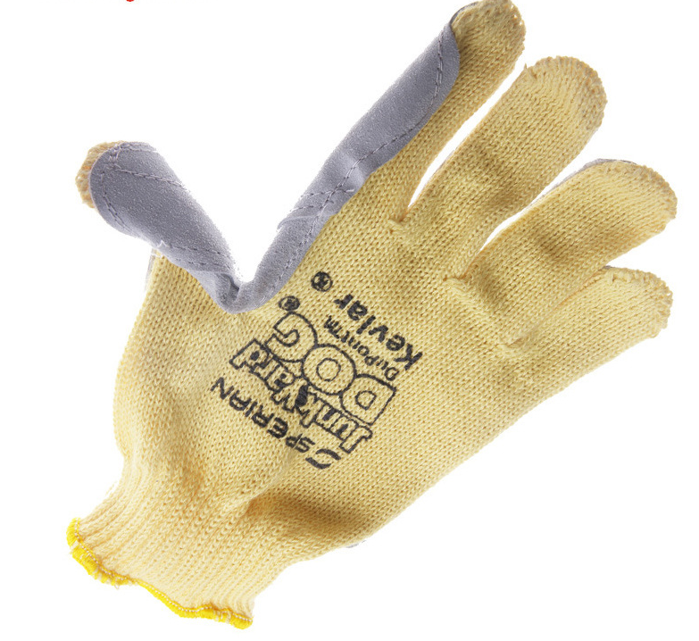 100% KEVLAR 纤维编织手套,贴皮手套,符合欧标EN388 4 级防割标准 |
