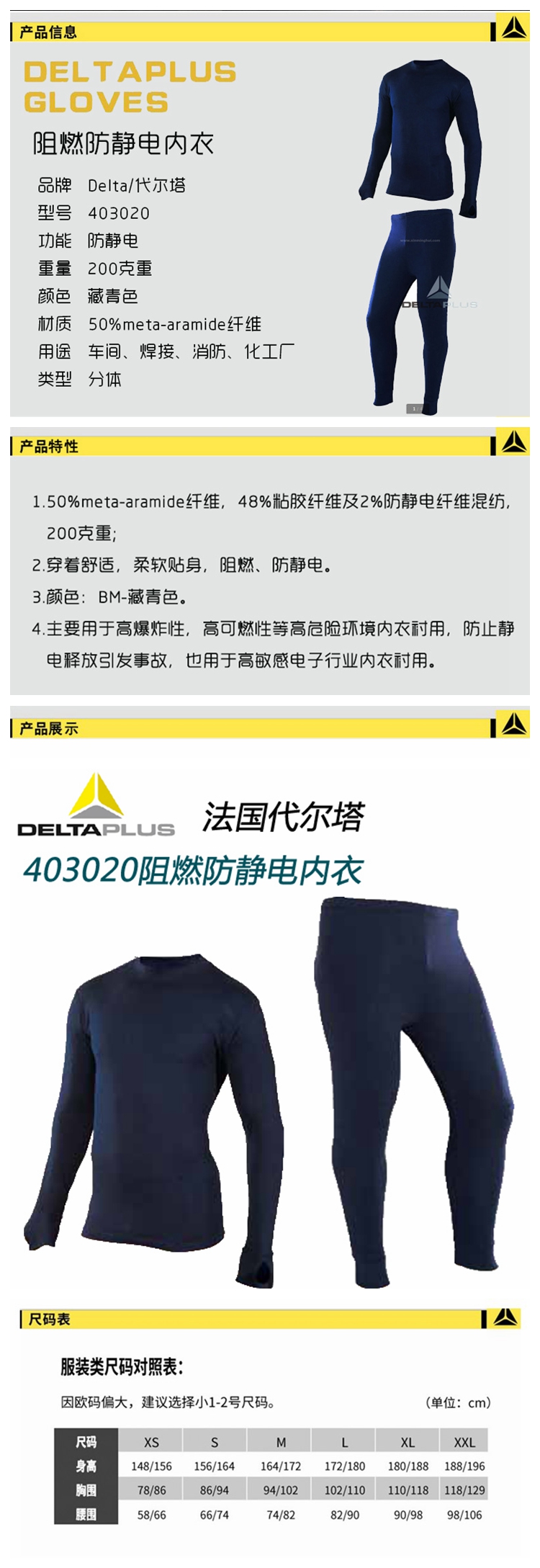 阻燃防静电内衣,50%meta-aramide纤维,48% 粘胶纤维2%防静电纤维混纺,200克重,穿着舒适,柔软贴身,阻燃、防静电