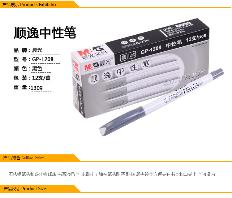 | 中性笔水笔晨光文具顺逸GP1208书写办公签字笔0.5mm 黑色一盒12支装 |