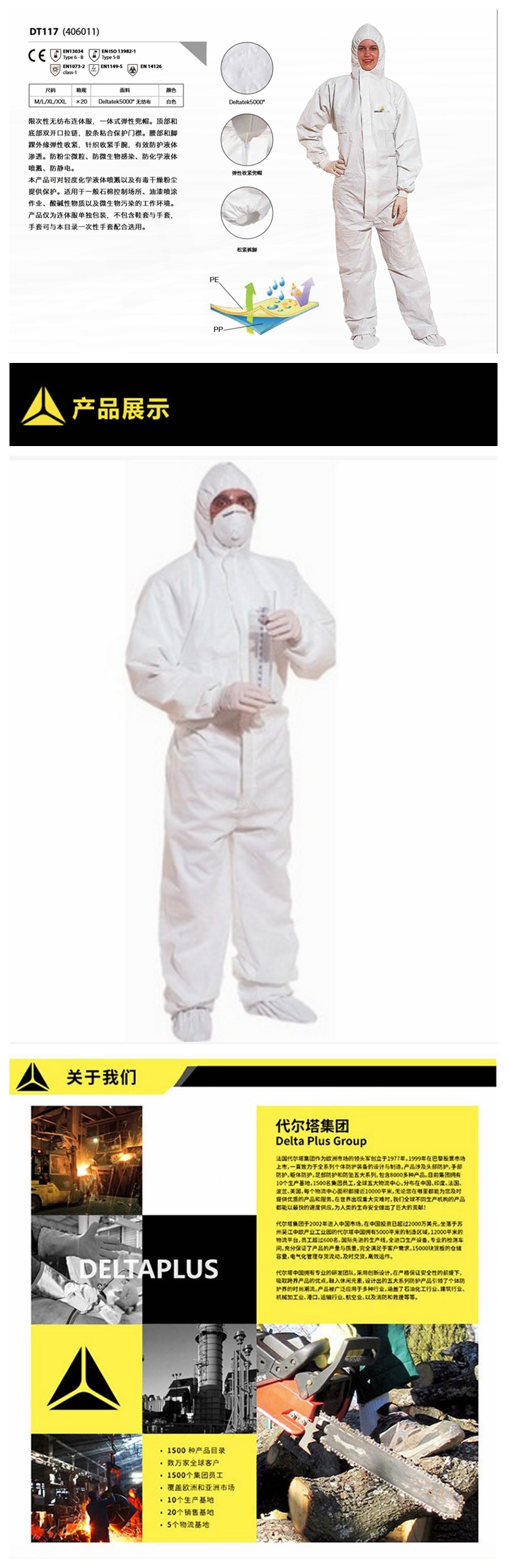 | 代尔塔406011 防静电防微生物5级防化服 | |||