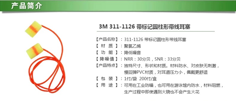 | 3M311-1126 带标记圆柱型带线耳塞 200付/盒,10盒/箱 | |||