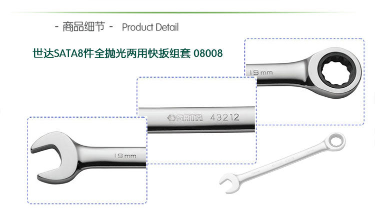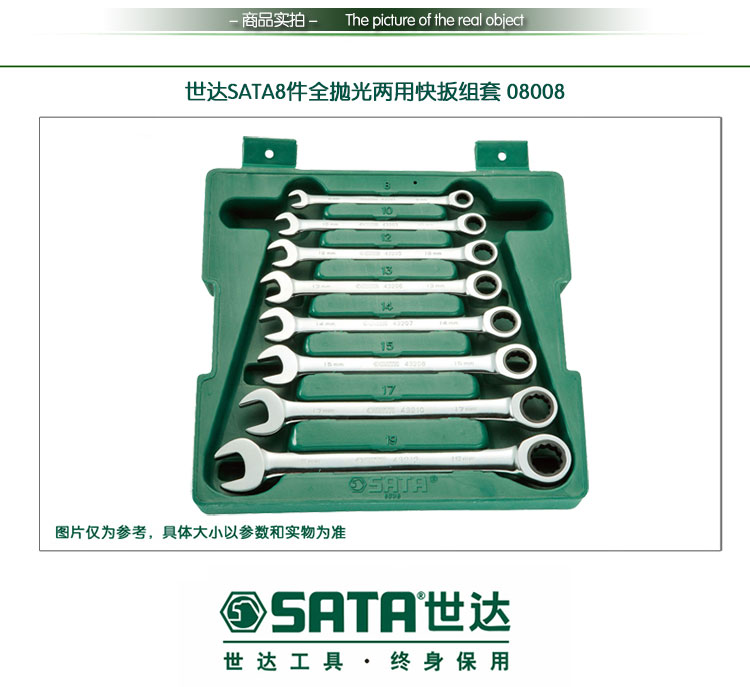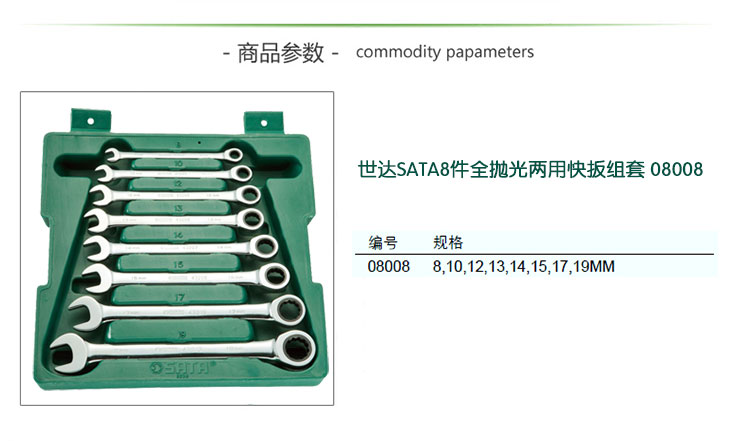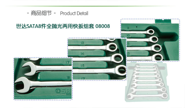 >> 世达工具(SATA)组合开口快速扳手套装套筒8件套全抛光两用快扳/ 08008
