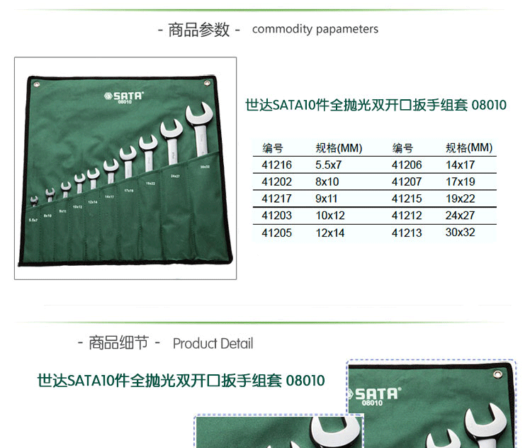 >> 世达工具(SATA) 10件全抛光扳手 双口扳手组合套装 /08010
