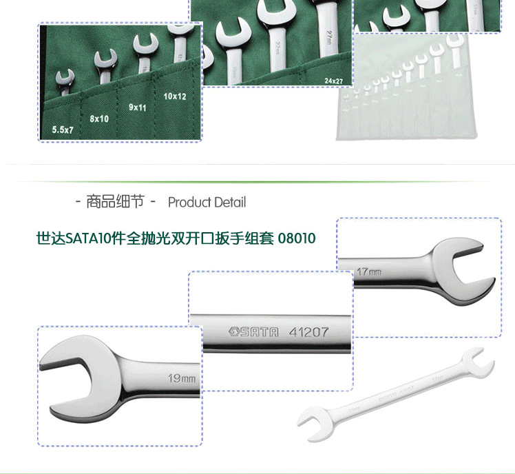 | 世达工具(SATA) 10件全抛光扳手 双口扳手组合套装 /08010 |