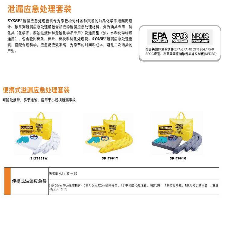 | 西斯贝尔sysbel便携式溢漏应急袋(通用型)(防化型)(油类专用) | |||