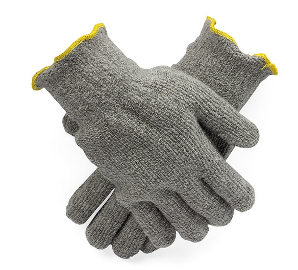 1、灰色毛圈棉材质编织手套; 2、毛巾面朝外; 3、符合EN407 2级热接触防护等级 |