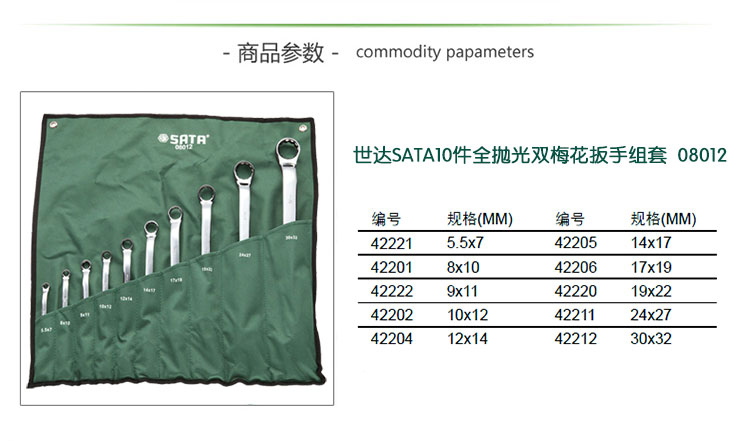 | 世达工具(SATA)包套装 10件全抛光双梅花扳手组套/08012 |