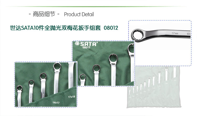 >> 世达工具(SATA)包套装 10件全抛光双梅花扳手组套/08012