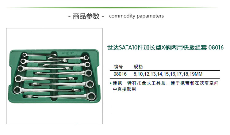 | 世达工具(SATA)盒套装 10件X柄加长两用快扳组套/08016 |