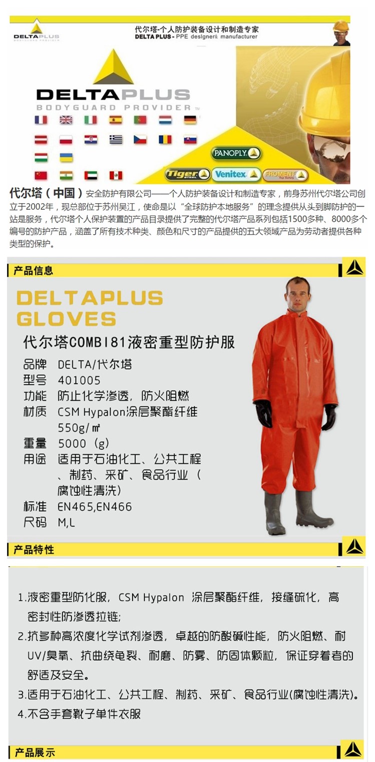 | 代尔塔401005 液密重型防化服(不含手套靴子) | |||