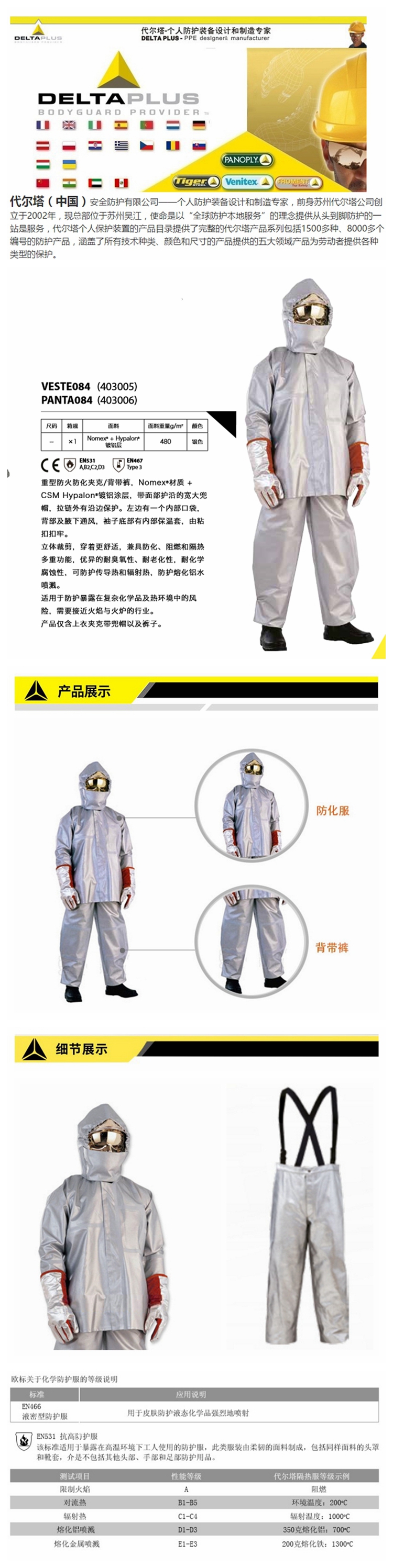 | 代尔塔403005/403006 镀铝涂层重型防火防化服背带裤 | |||