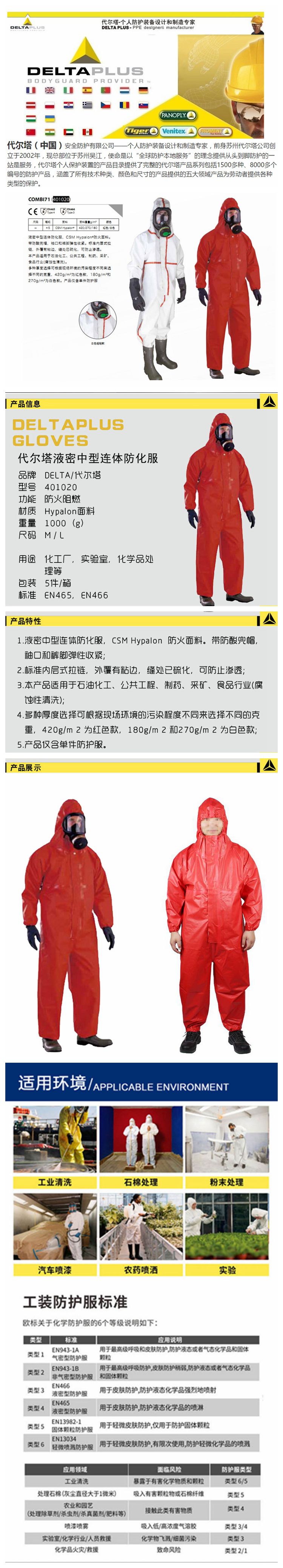 | 代尔塔401020 耐酸碱防护服防火阻燃防护服液密中型连体防化服 | |||