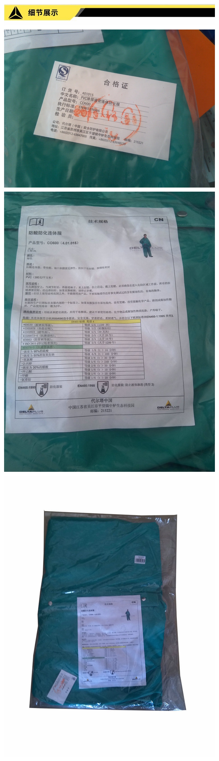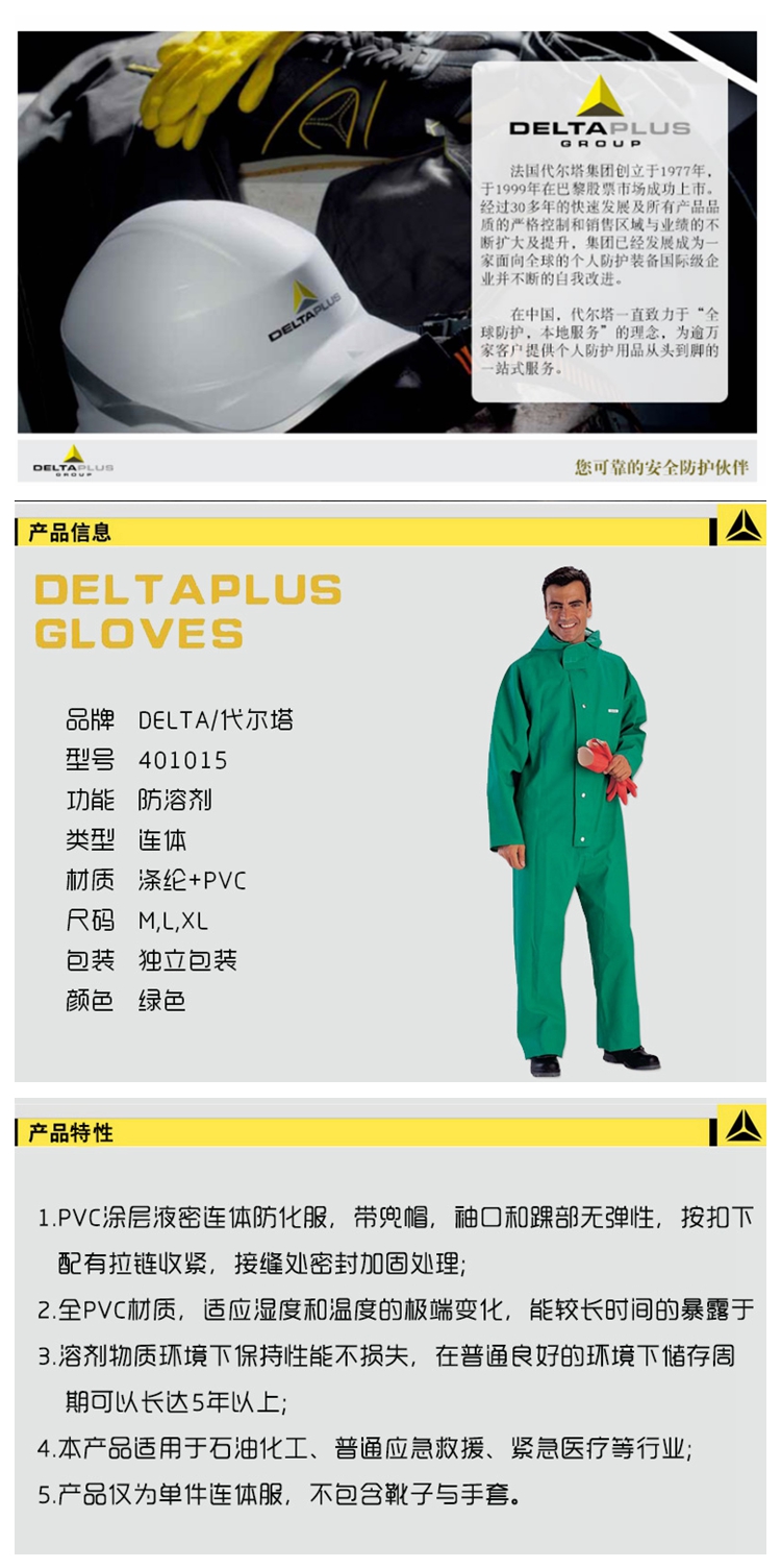 | 代尔塔401015 PVC涂层多次液密防化服防喷溅耐酸碱化工连体服 | |||