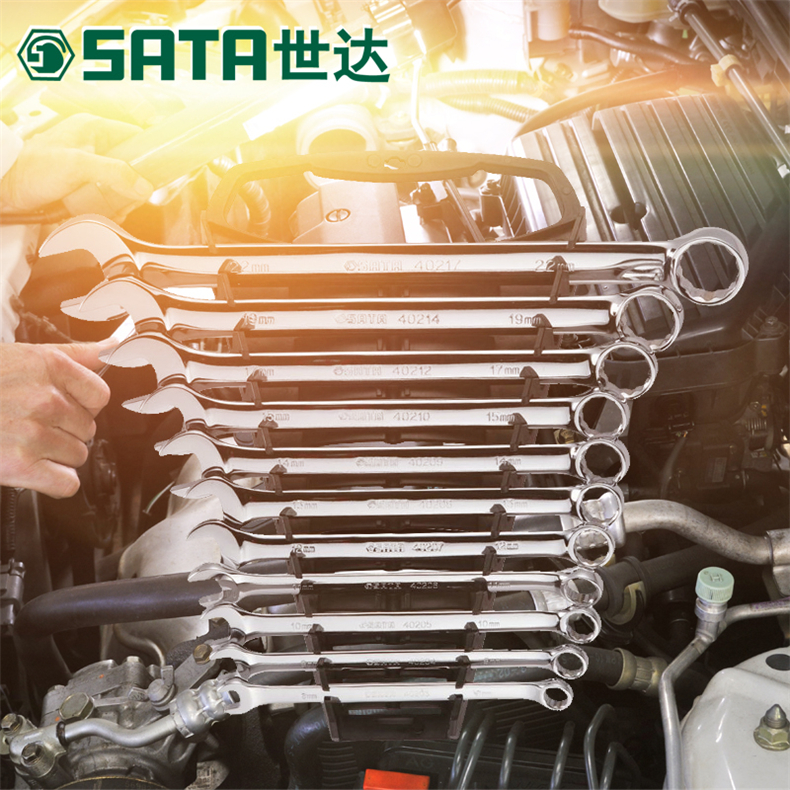 >> 世达工具(SATA)11件两用扳手组套汽修五金工具机修开口扳手套装组11件全抛光两用扳手组套/09022