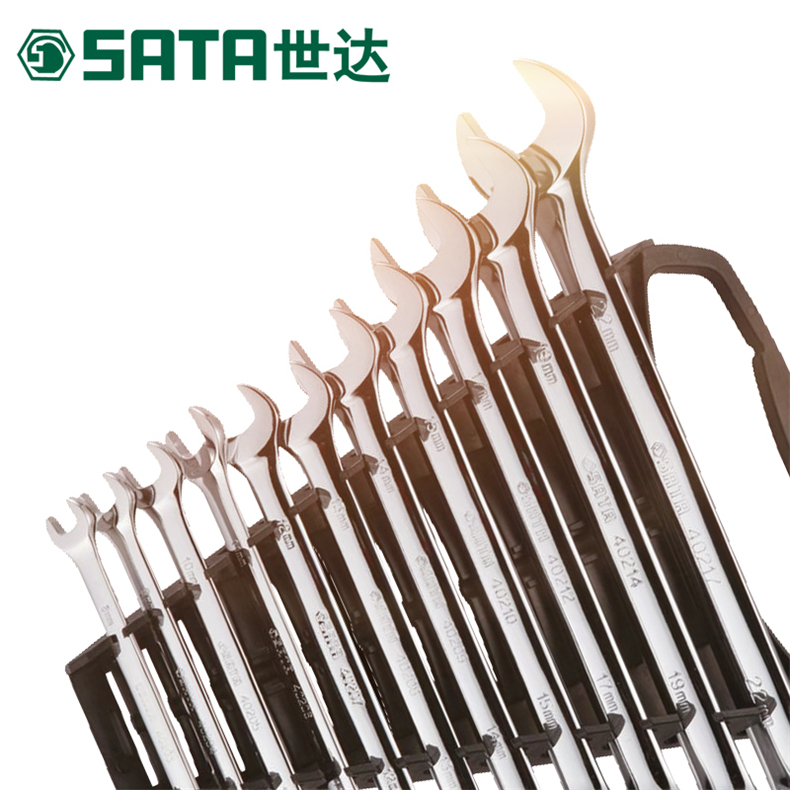 | 世达工具(SATA)11件两用扳手组套汽修五金工具机修开口扳手套装组11件全抛光两用扳手组套/09022 |