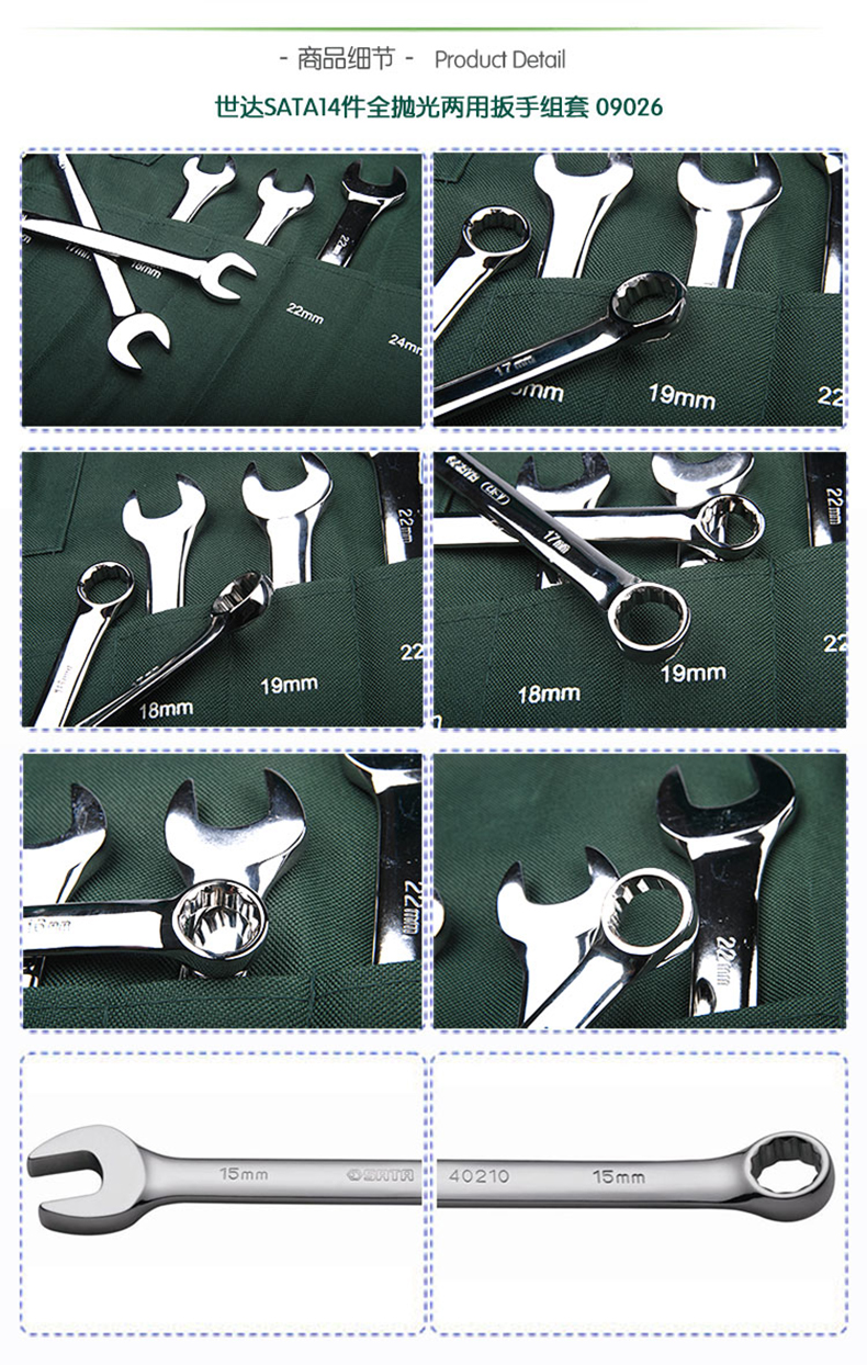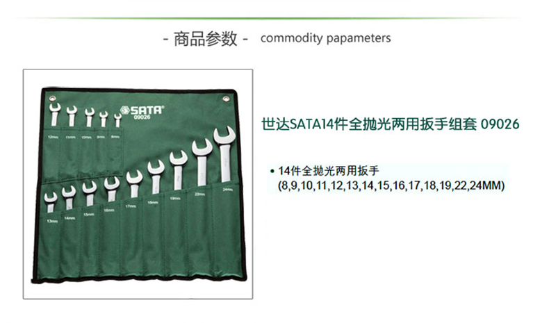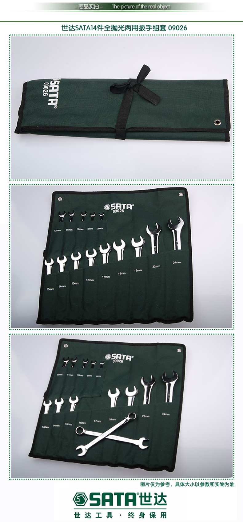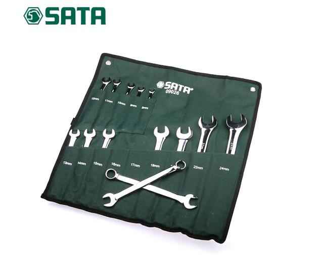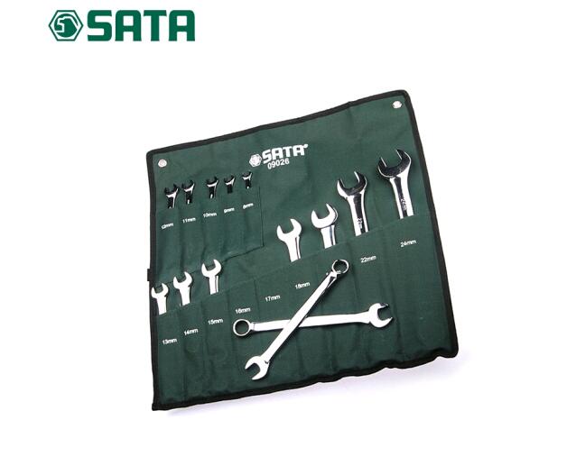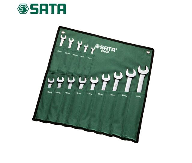 >> 世达工具(SATA) 14件全抛光两用开口梅花扳手工具包套装/09026