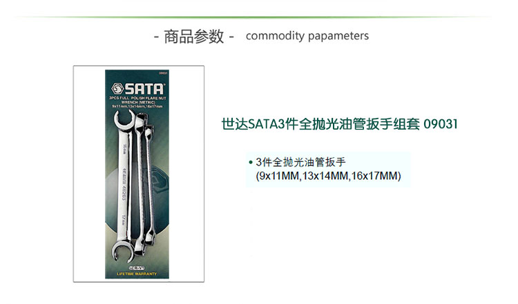 | 世达工具(SATA)套装 3件全抛光油管扳手组套/09031 |
