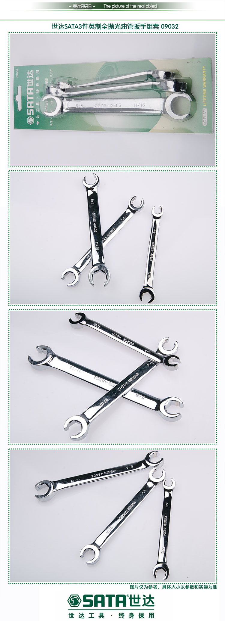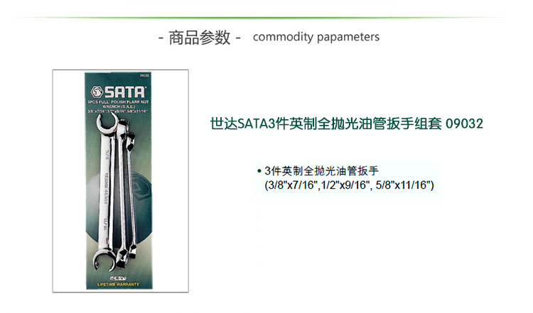 | 世达工具(SATA)套装3件英制全抛光油管扳手组套/09032 |