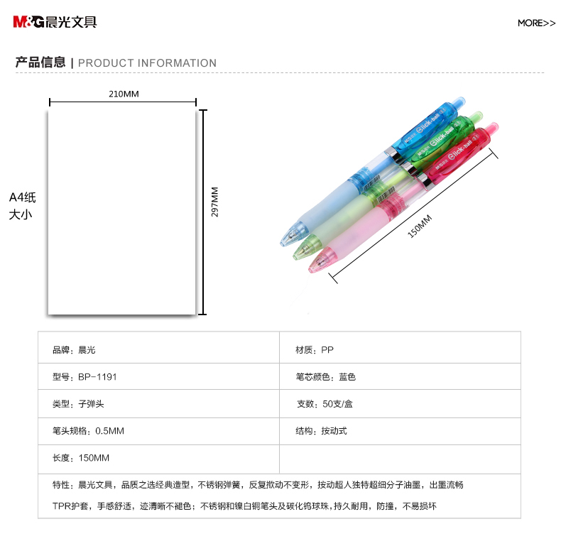 | 晨光圆珠笔按动超人0.5mm原子笔办公用品考试学习文具BP1191 |