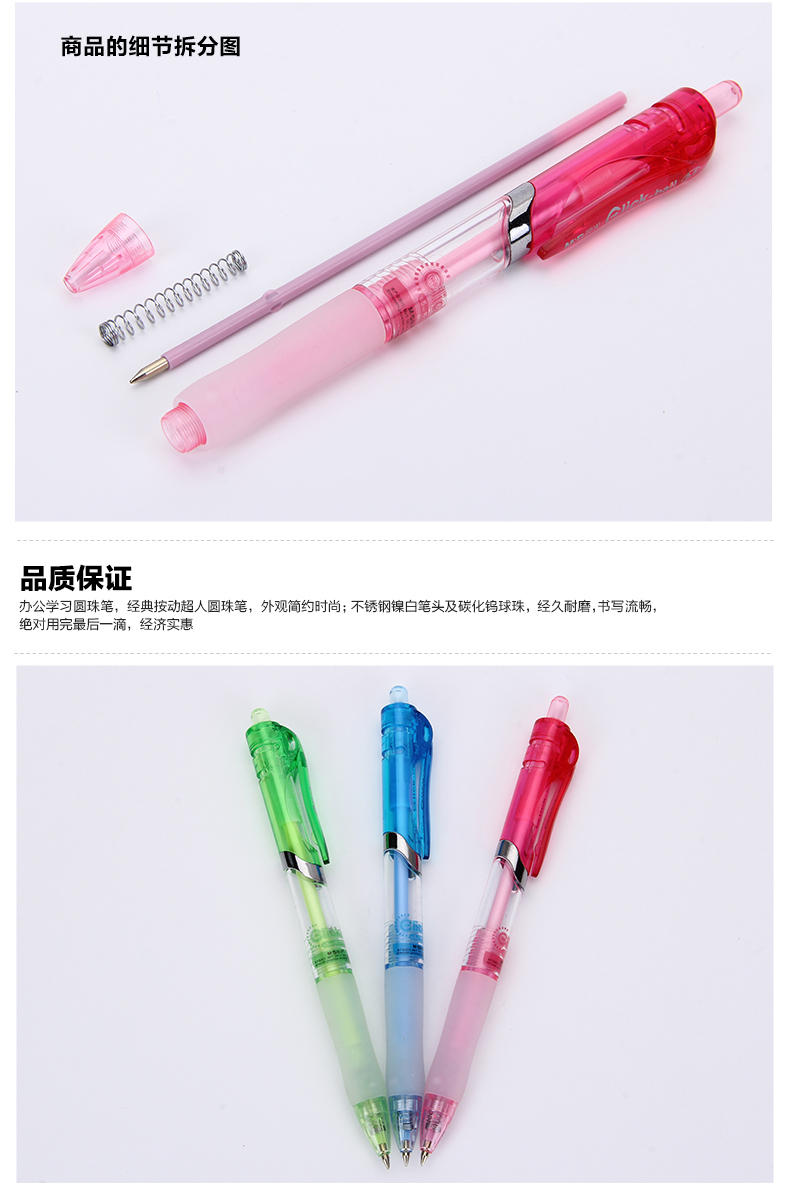 1、不锈钢弹簧,反复按动不变型。