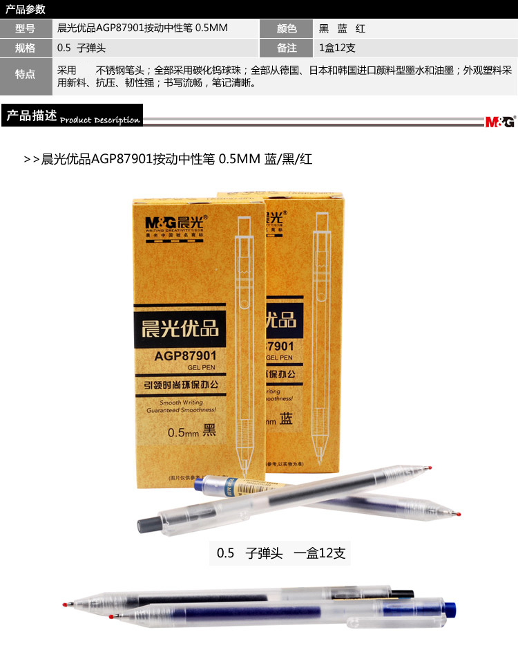 | 晨光优品系列中性笔AGP87901按动中性笔0.5mm 磨砂杆签字笔 |