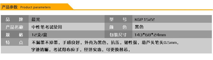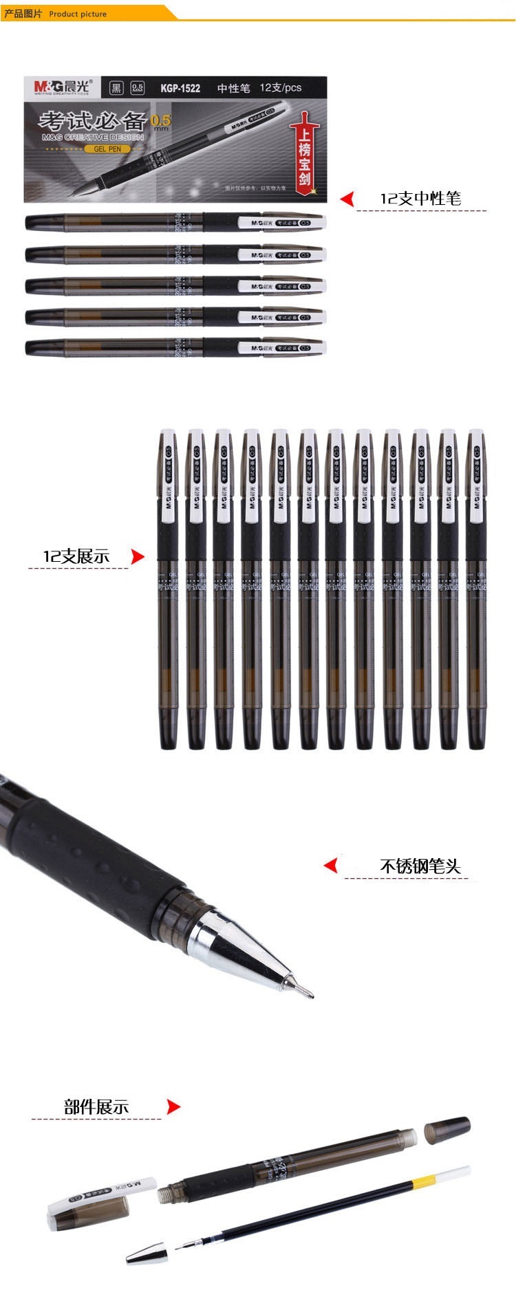 | 晨光考试必备中性笔 KGP-1522 0.5MM全针管水笔12支盒装 |