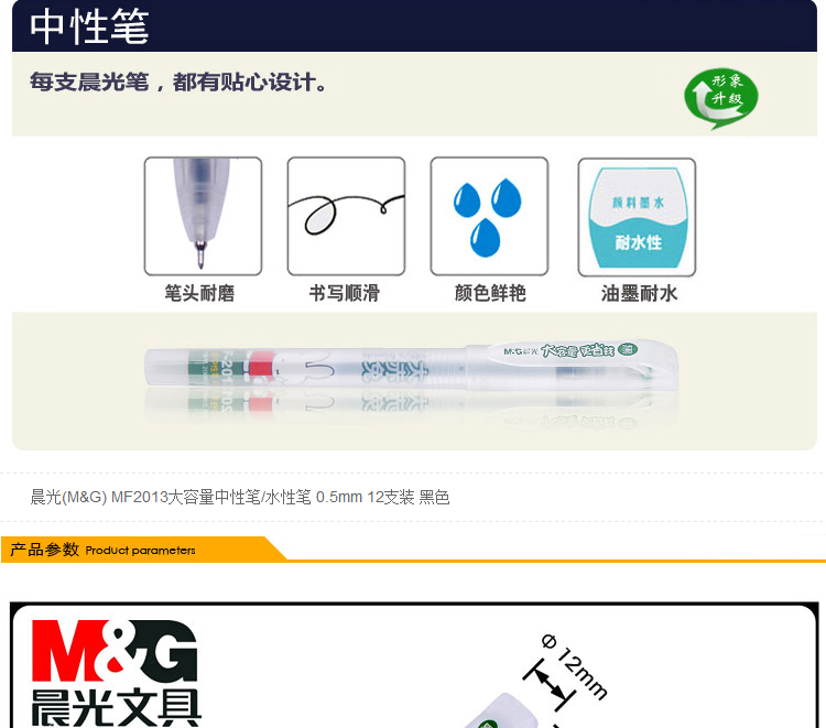 | 晨光MF2013米菲大赤兔大容量中性笔签字笔 中性笔 黑色 12支装 |