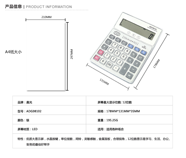 | 晨光ADG98102 语音型计算器水晶按键真人发音计算器 |