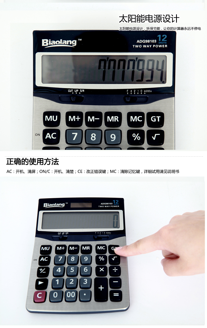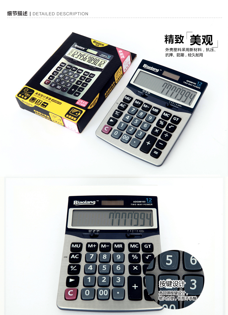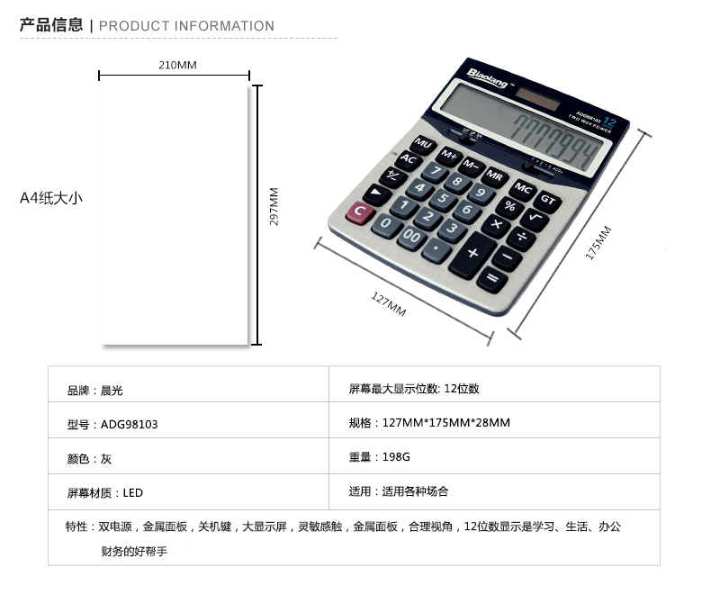 | 晨光ADG98103 桌面型计算器金属面板双电源计算器 |