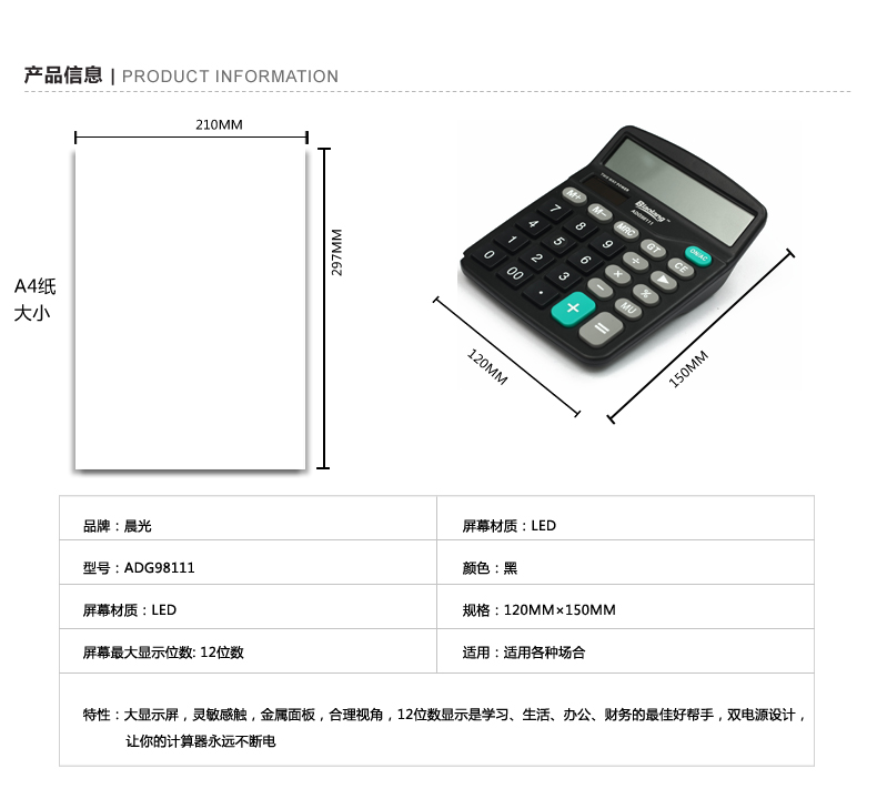 | 晨光ADG98111 桌面型计算器水晶大按键办公计算器 |