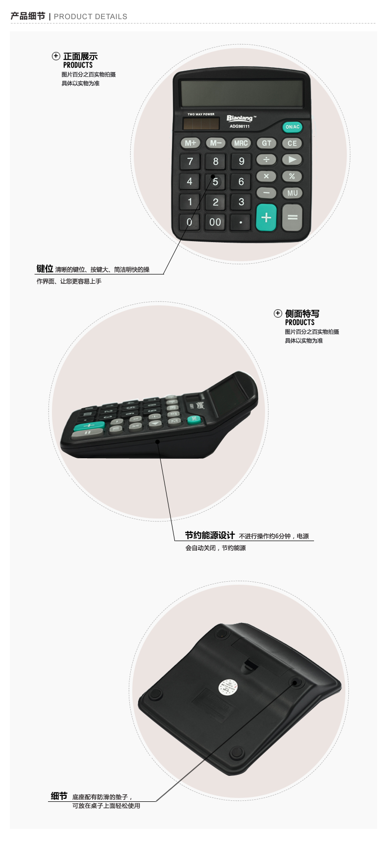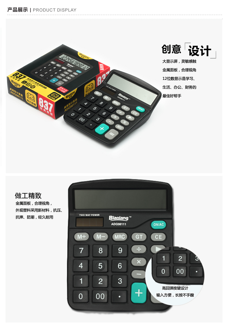 桌面型计算器,大显示屏,双电源设计