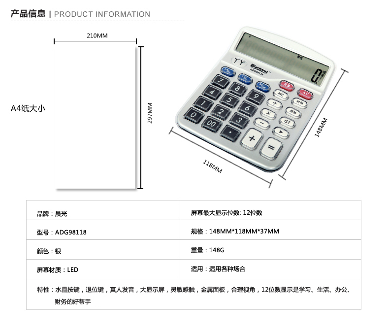 | 晨光ADG98118 语音型按键真人发音电子计算器 |