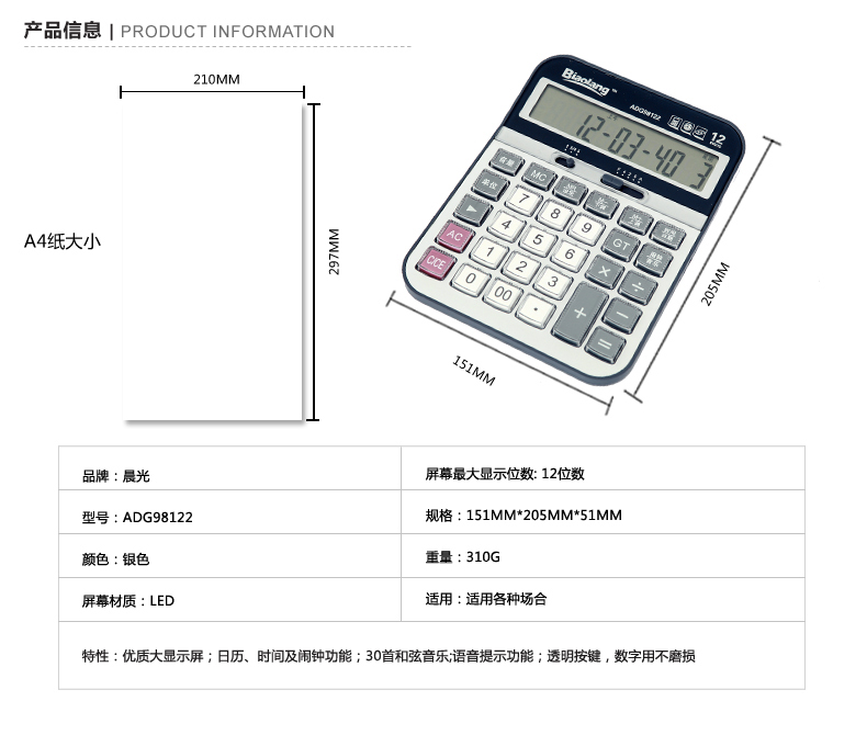 | 晨光ADG98122 语音型标朗大按键电子计算器 |