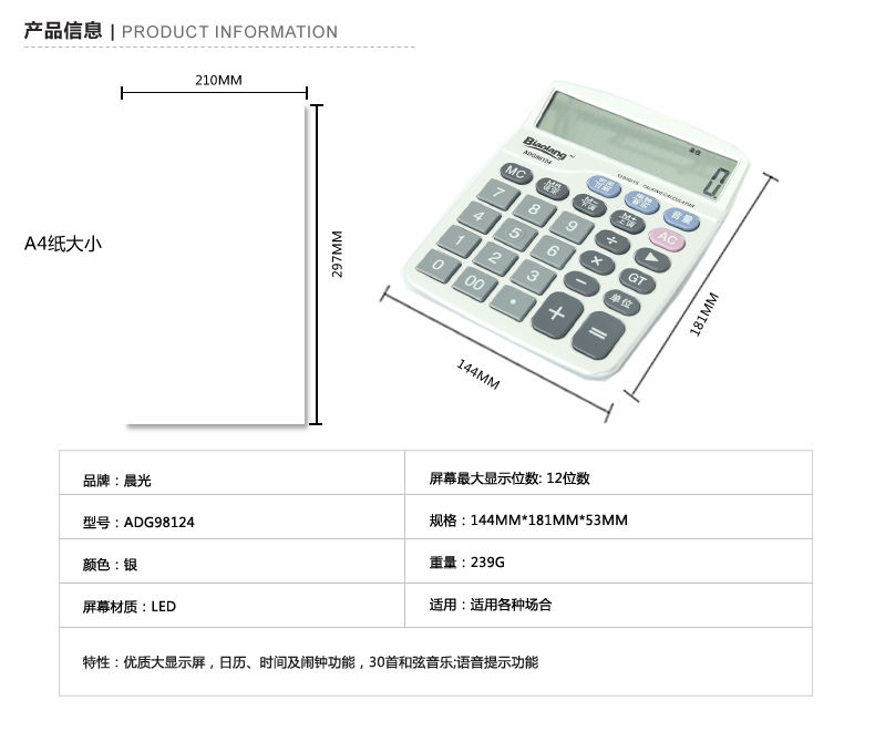 | 晨光ADG98124 标朗语音型真人发音电子计算器 |