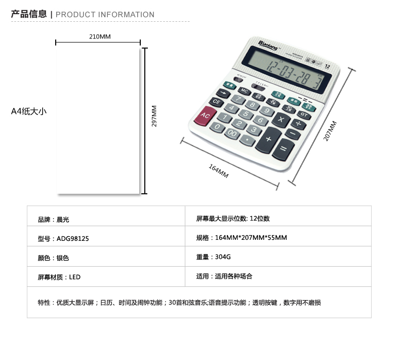 | 晨光ADG98125 标朗语音型大号电子计算器 |
