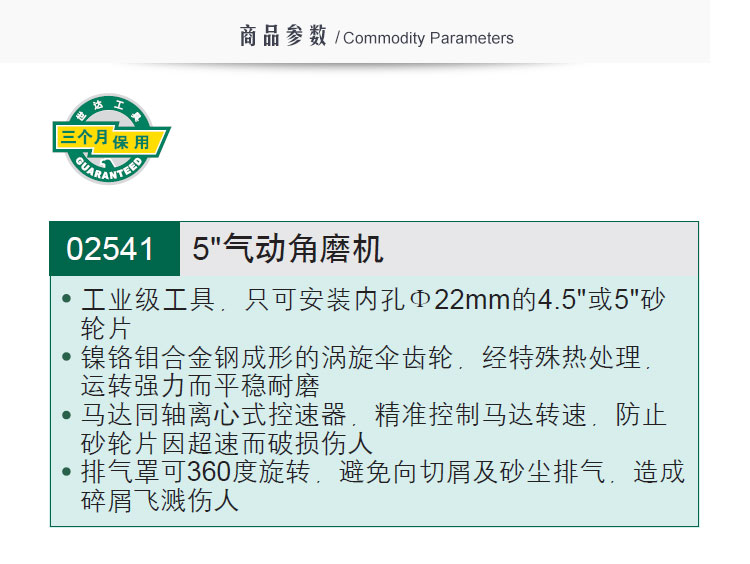 1、 工业级工具,只可安装内孔Φ22mm的4.5"或5"砂轮片