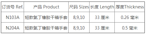 | 霍尼韦尔 氯丁橡胶干箱手套N103A/N204A | |||