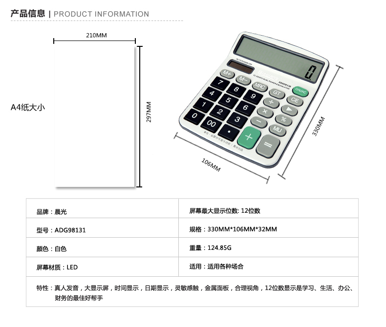 | 晨光ADG98131 语音型真人发音大屏电子计算器 |